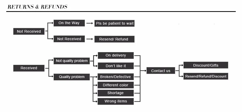 We accept 7 days no reason return,and any quality problem we do refund or resend.BUT not worry,we always check very closely all of our jewelry before shipping!!!
