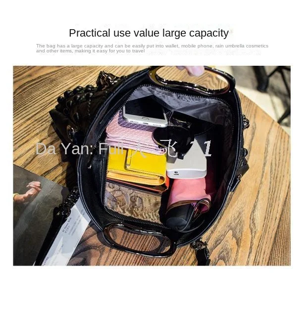 Genuine Leather Women's Handbags Luxury Fashion Soft Leather Lady Tote Shoulder Messenger Bag Large Capacity Women Rivet BagsMaterial: Genuine leather