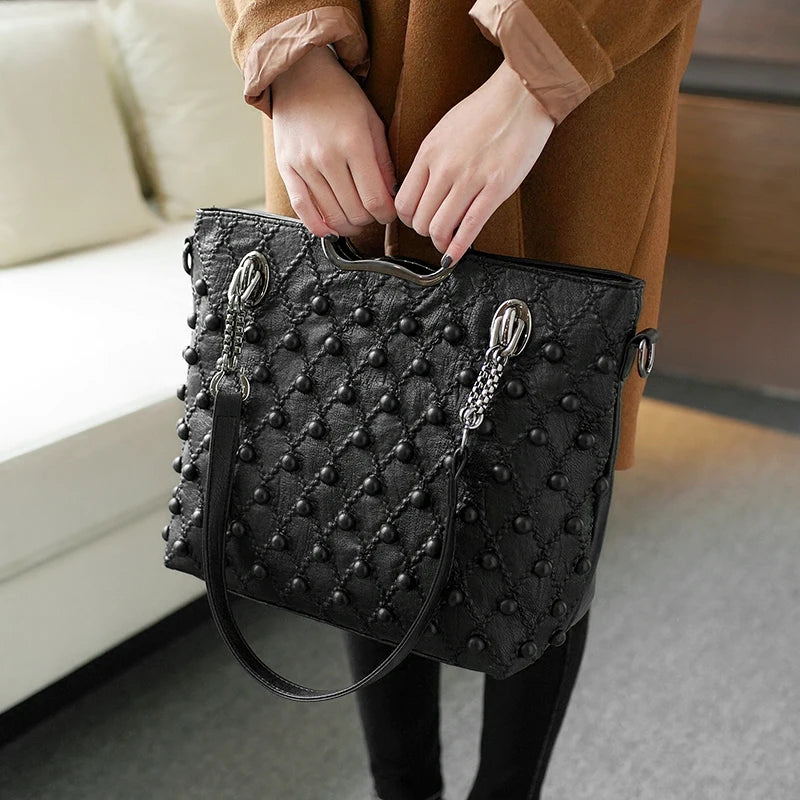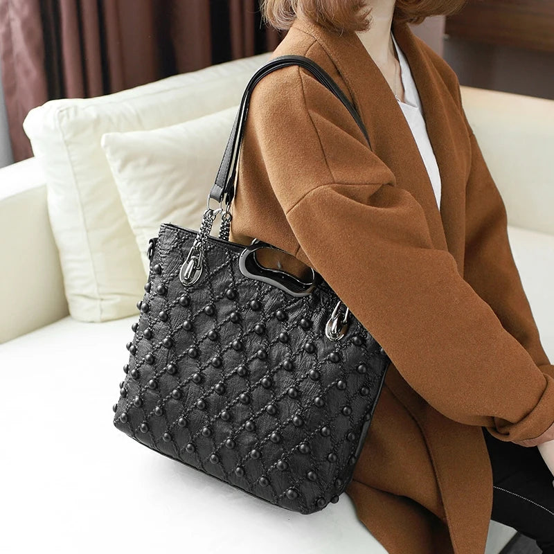 Item No.: Soft Leather Sheepskin Rivet Large Capacity Handbag