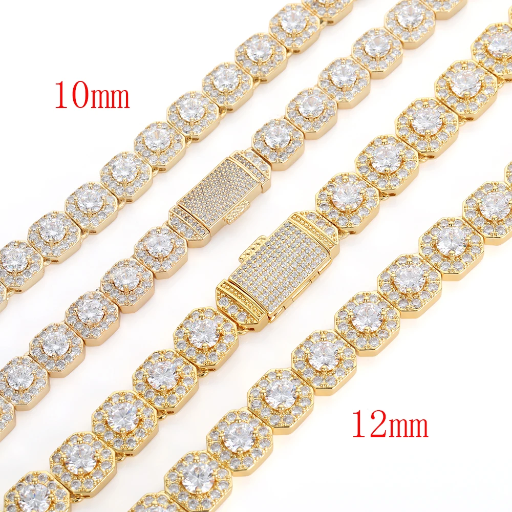 NY 10/12mm Disponibile Collana con catena di zucchero rock AAAAA Cubic Zirconia Collana di gioielli stile hip hop di design alla moda per uomo e donna