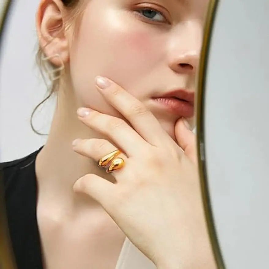 Adjustable Open Rings: Adjustable Dome Teardrop Rings